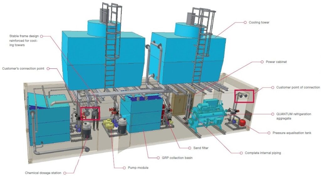 V kombinaci se širokou škálou našich atmosférických i strojních chladičů jsme schopni dodat chladicí okruhy na klíč. Chladicí okruhy mohou být jednookruhové či víceokruhové a mohou být provedeny standardně nebo jako kontejnerové jednotky.