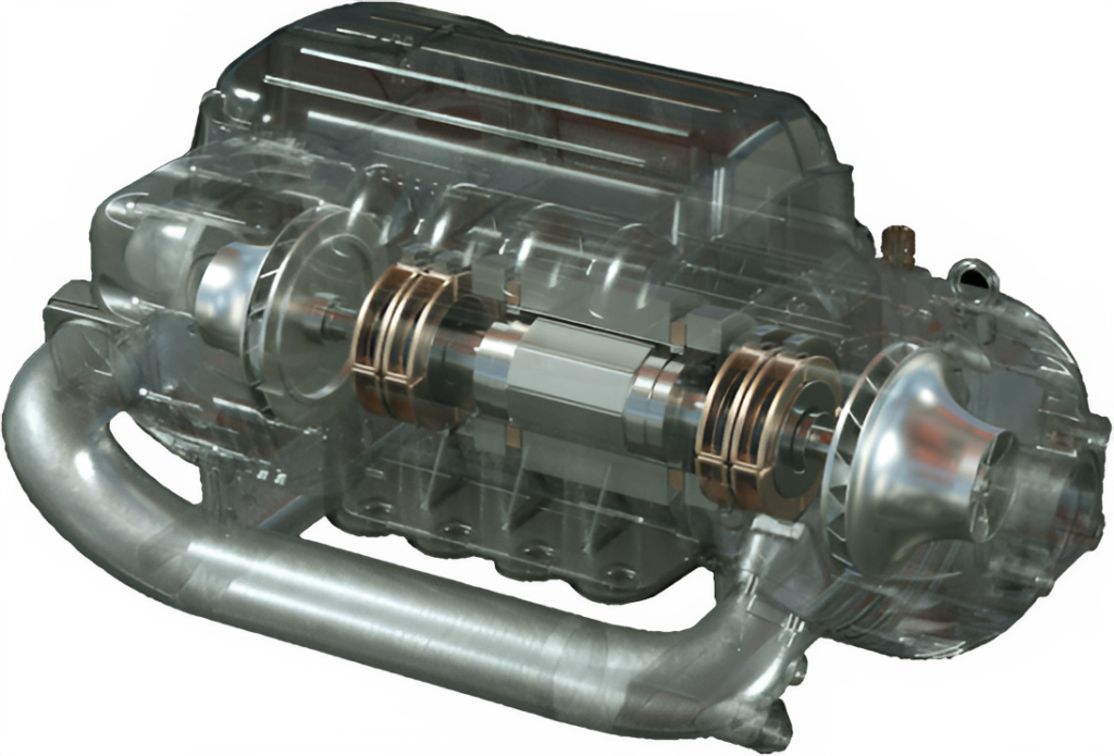 • Synchronní motor s permanentním magnetem, integrovaný frekvenční měnič (0-750 Hz) a softstartér