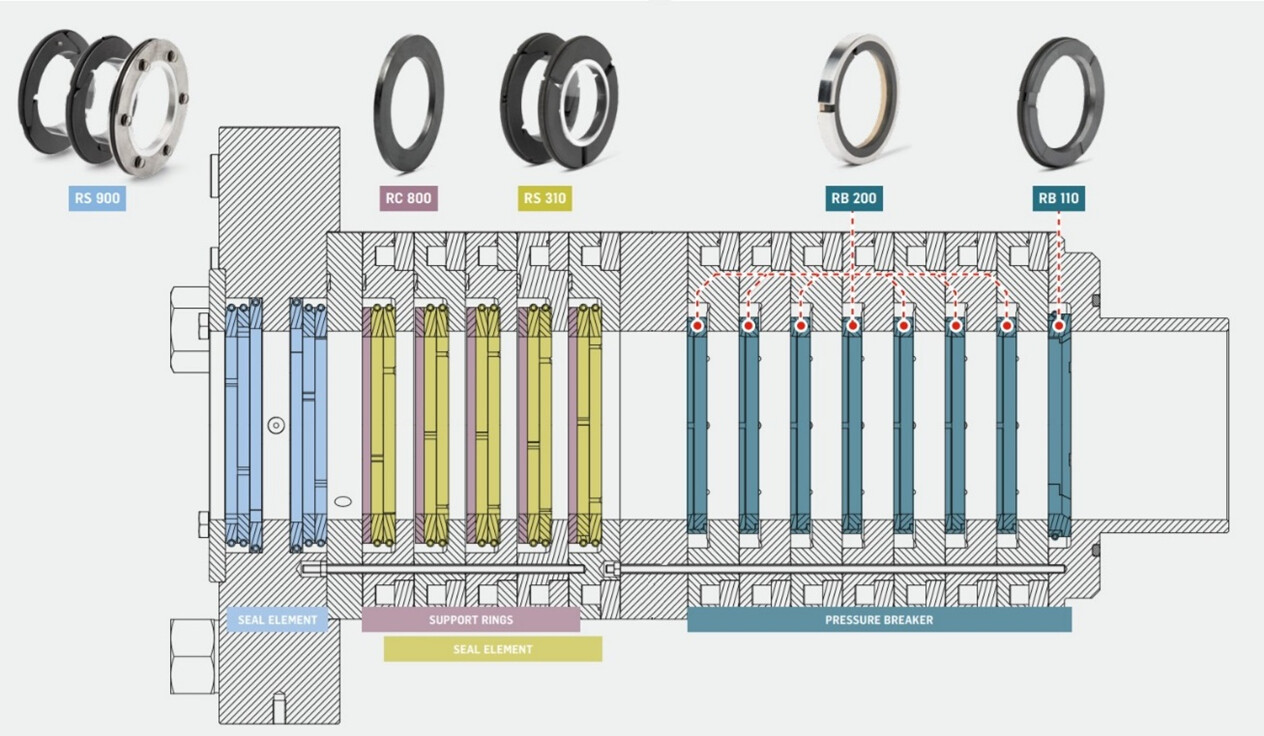 Řešení Redura® je obvykle heterogenní, což znamená, že s ohledem na tlakové zatížení, typ plynu a charakter komprese jsou kombinována různá konstrukční a materiálová provedení pístních a vodicích kroužků. Design i materiály jsou vyvinuty přímo společností Burckhardt Compression na základě dlouhodobých zkušeností z provozu kompresorů. Výsledkem je vysoká účinnost komprese s minimálními úniky plynu a dlouhá životnost kroužků.