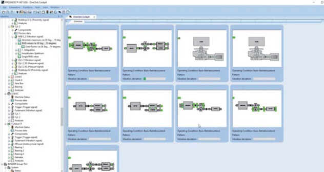 PROGNOST®-NT lze využít také pro monitoring rotačních strojů, například kompresorů, čerpadel, turbín nebo převodovek. V těchto aplikacích systém sleduje zejména: