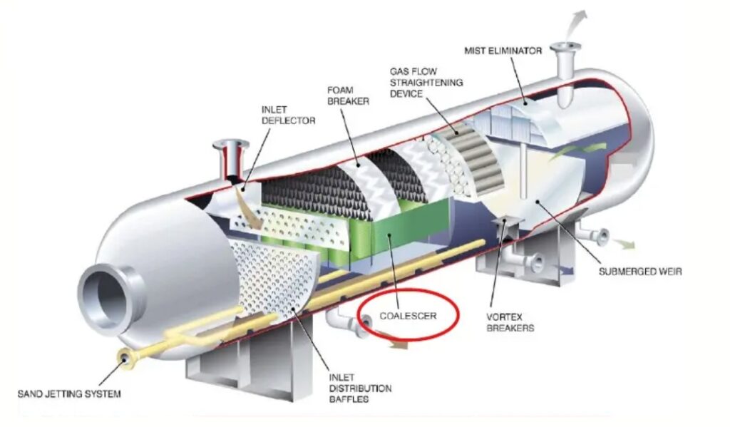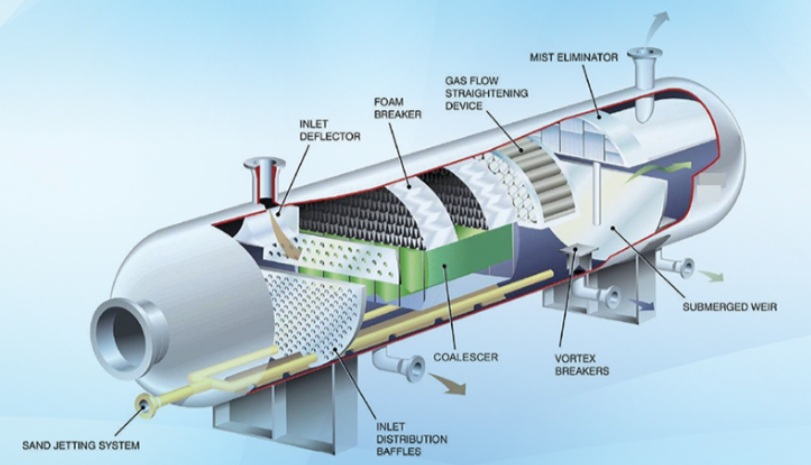 Účelem třífázového separátoru je rozdělit směs olej–voda–plyn na jednotlivé složky.