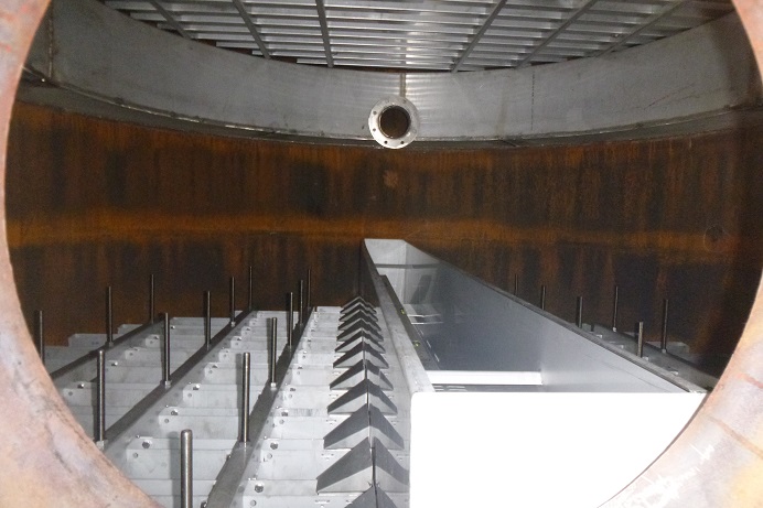 Kolona je opatřena výplní a vestavbami výrobce Sulzer Chemmtech Ltd.